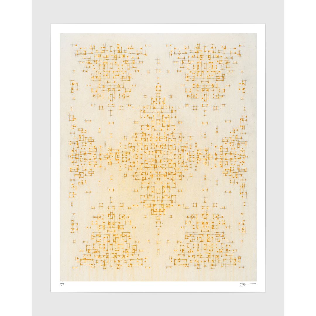 Each artwork represents an information architecture that graphically documents the passage of time and the temporary nature of beings, artifacts, structures, civilizations, memories, and even our own existence.