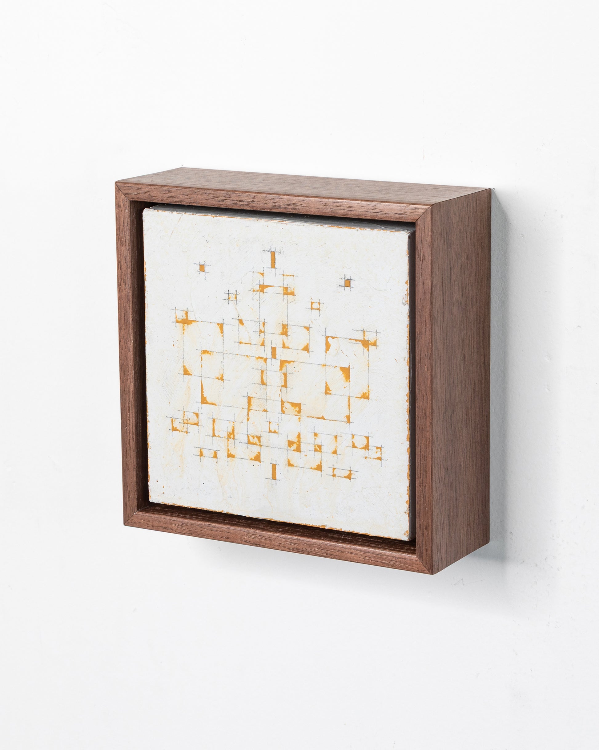 Size & Framing: The dimensions of this piece unframed are 5 x 5 x 1.5 inches. Framed the dimensions are 6 x 6 x 2 inches. The substrate is cradled birch panel. All paintings are wrapped in high quality hardwood frames of white oak, natural walnut, ebonized walnut or gray washed cherry. Each comes neatly packaged and ready to hang with a hangz sawtooth hanger hand embedded in the frame, and hangz wall hardware.