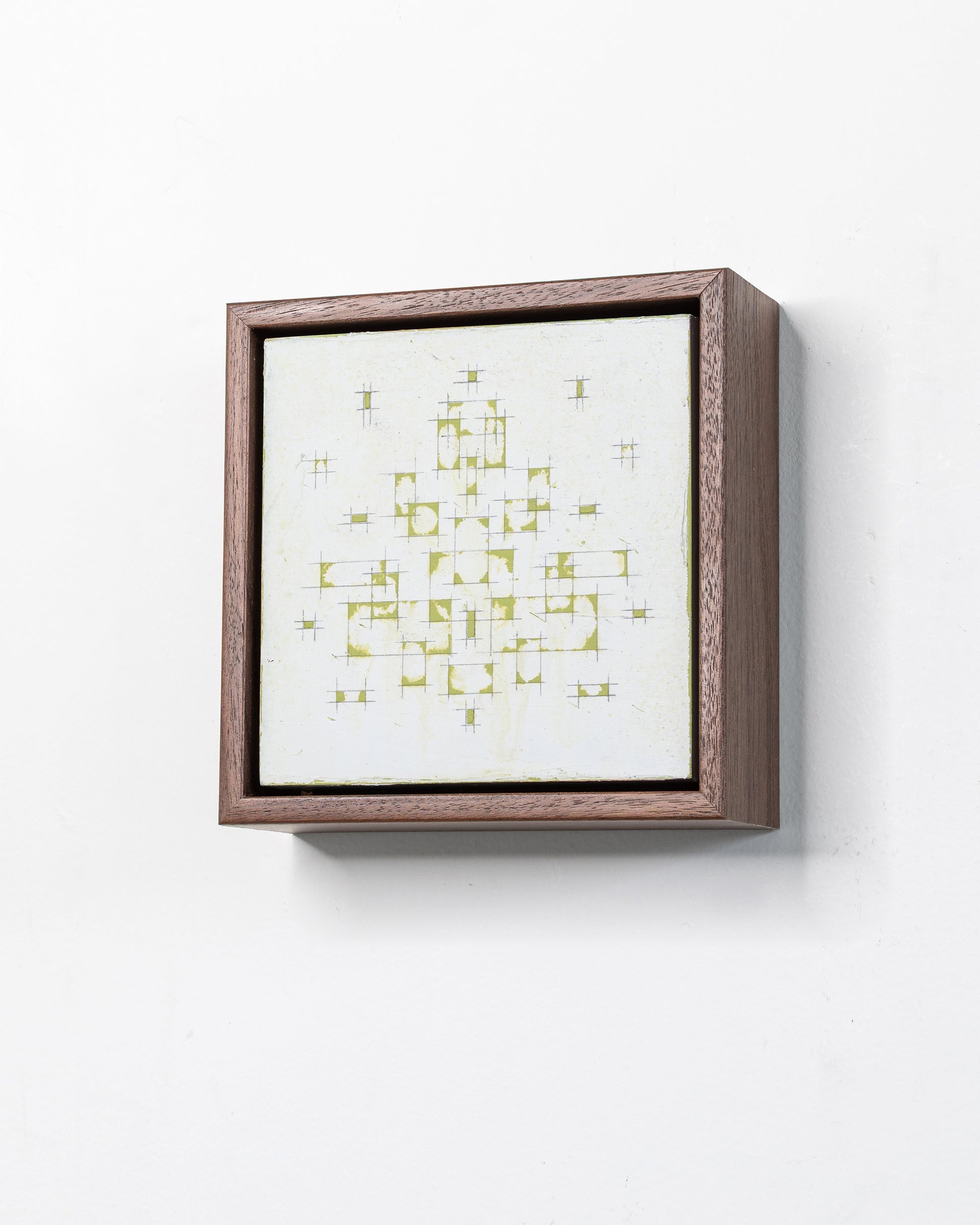 Size & Framing: The dimensions of this piece unframed are 5 x 5 x 1.5 inches. Framed the dimensions are 6 x 6 x 2 inches. The substrate is cradled birch panel. All paintings are wrapped in high quality hardwood frames of white oak, natural walnut, ebonized walnut or gray washed cherry. Each comes neatly packaged and ready to hang with a hangz sawtooth hanger hand embedded in the frame, and hangz wall hardware.
