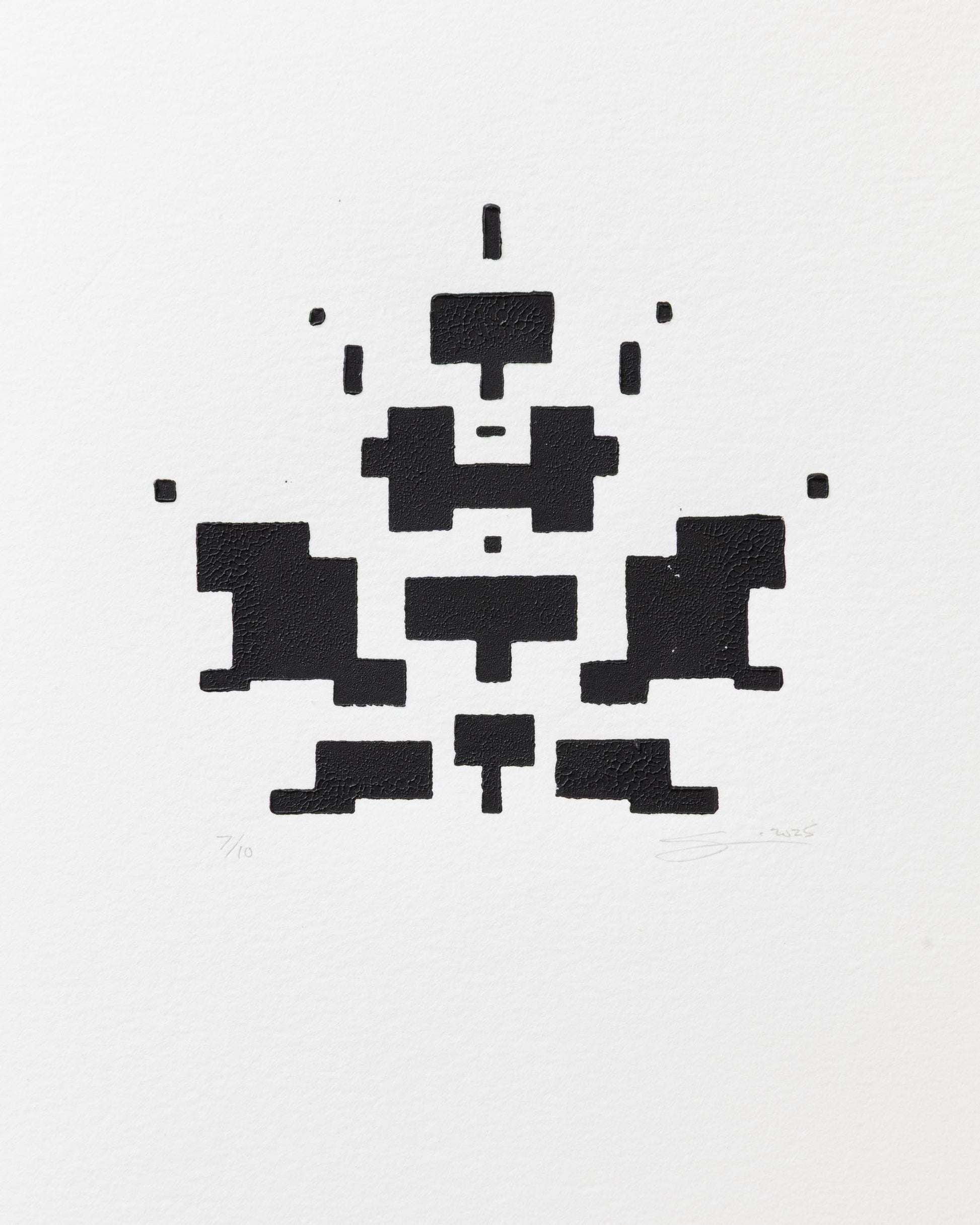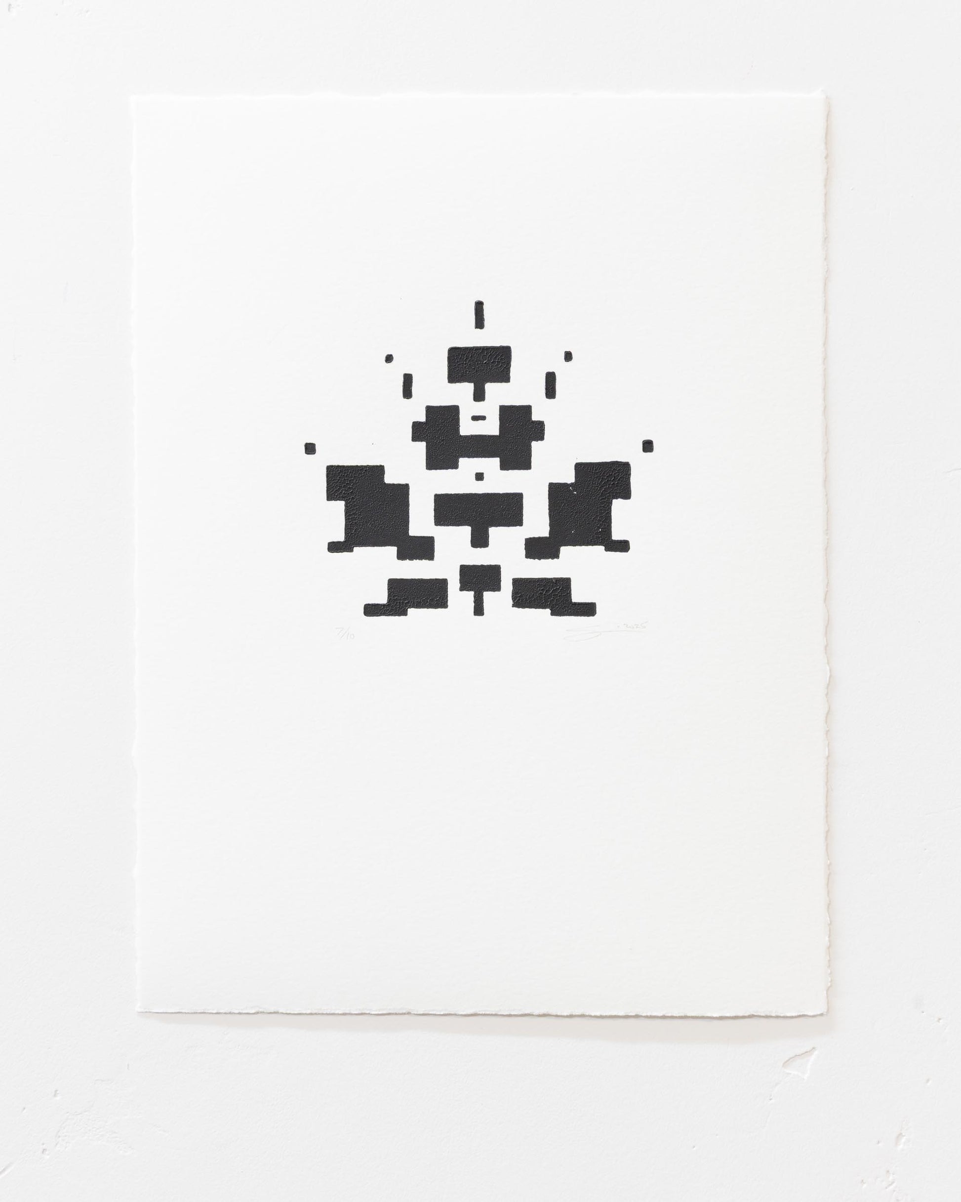 Print 3 of 10 in the edition. This limited edition of 10 prints interprets Fall's most symbolic element, the fallen leaf, in my geometric, schema style. Each print is an experiment with decay (similar to leaves losing color and decomposing) with varying organic patterns of inkless voids within the geometric design. In some prints, the graphics are nearly full black, others have voids in different areas and in varied amounts.