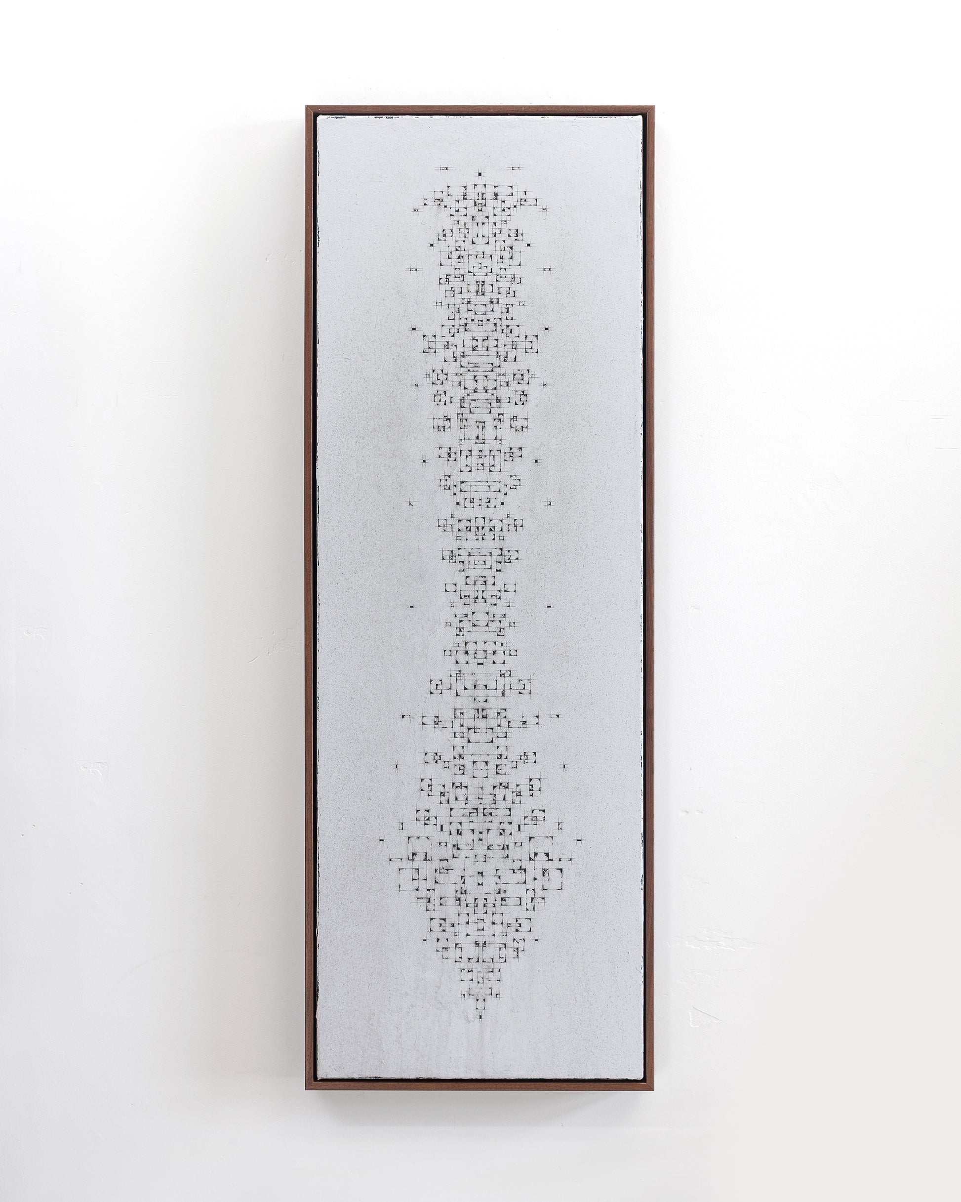 This abstract, framed, ready-to-hang acrylic painting is part of my "Schema" Collection. It's gentle warm, white underpainting is full of depth and texture as a result of semi-transparent under layers of Mars Black. A broad array of simple, precise, geometric, architectural acrylic elements are overlaid upon a detailed lattice of graphite line work evocative of an abstract architectural schematic. **PLEASE REVIEW SHIPPING INFORMATION BELOW BEFORE ORDERING**
