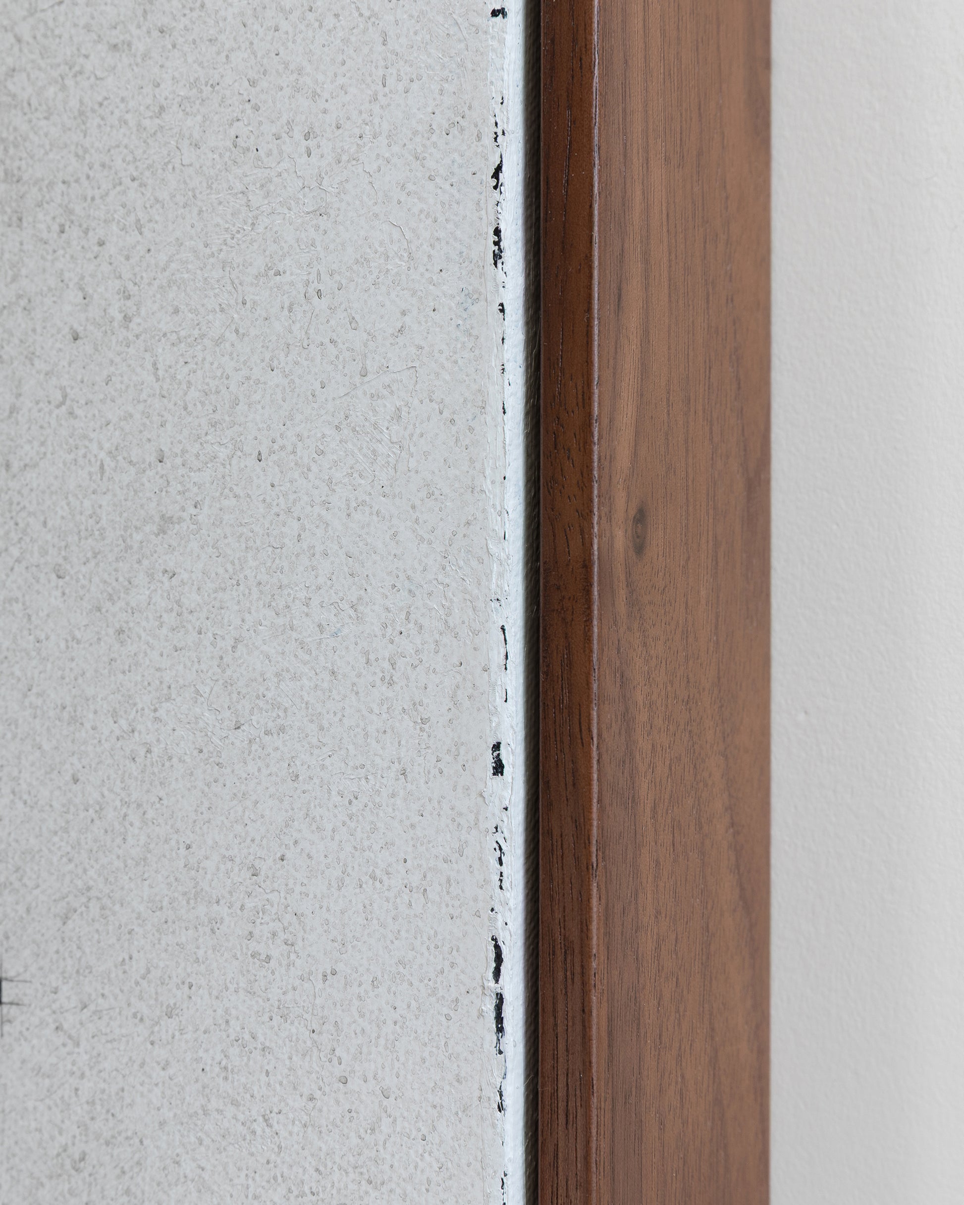 Size & Framing: The dimensions of this piece are 12 x 36 x 1.5 inches. The substrate is gallery profile canvas with a stapled back. The painting extends around the edges of the canvas behind the beautiful hardwood walnut float frame, and is ready to hang with silicone-coated stainless steel cable.